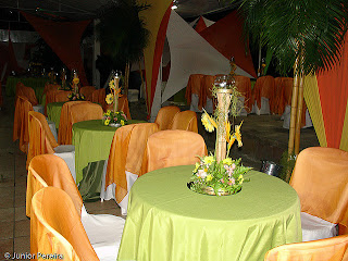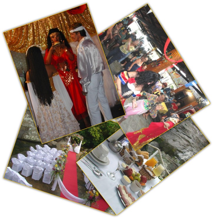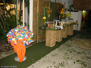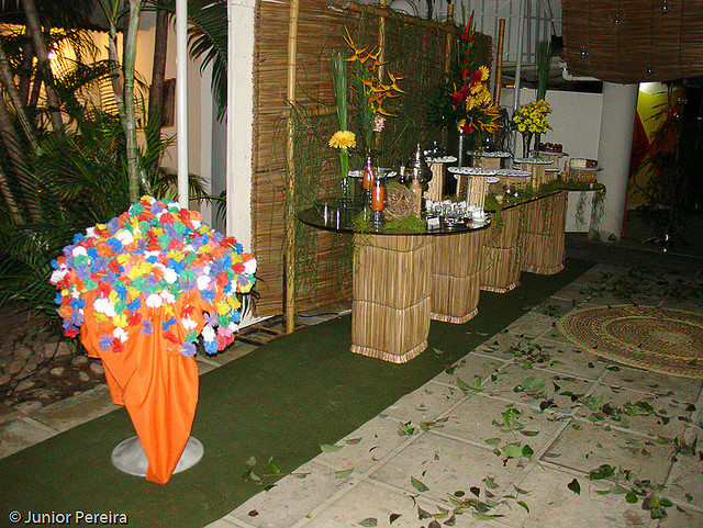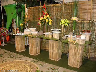 A cerimônia e a festa desse tema contam com riquíssimos detalhes alegres. A beleza e as cores de flores e frutas despertam o encanto de todos, evidenciando a natureza e a sensação de liberdade. Na decoração é sugerido o uso de materiais naturais como as folhas de bananeira e palmeira, fibras de coco e bambu, principalmente se a cerimônia acontecer à noite, já que o bambu pode ser usado para criar uma linda iluminação com velas ou tochas. Os tons que predominam nesses casamentos são os relacionados à natureza: verde, amarelo, azul, laranja e vermelho. Para o cardápio o clima de paz e amor é mantido quando servidas comidas leves, frutas e sucos naturais.