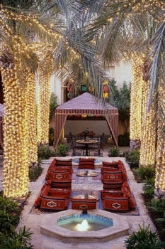 Nessas cerimônias a expectativa de muitos é que a noiva chegue ao altar montada em camelos ornamentados com muito tecido e brilho; entretanto, a versão atual desse ritual traz a noiva confortavelmente ao altar em tronos suspensos. Os convidados são os primeiros a chegar e desde o começo festejam muito no embalo de músicas típicas. Durante a festa, a noiva, a qual pode chegar a trocar sete vezes de roupa, passa por um ritual, onde tem suas mãos pintadas com henna, relacionado a uma preparação para as noites de núpcias. Na festa tradicional muçulmana não há a ingestão de álcool, mas em compensação, são servidos muitos doces para garantir a energia dos convidados e dos noivos para que a comemoração siga por boa parte da noite.