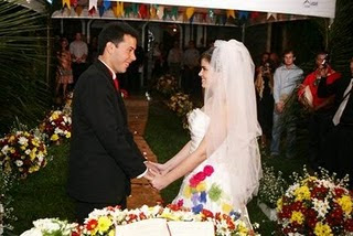 Realizados nos meses de Junho e Julho, esses casamentos incorporam na cerimônia o espírito junino das festas juninas tradicionais. Para manter o casamento com um toque de requinte e sem perder o motivo caipira, na decoração, é aconselhável a escolha de três ou quatro cores, as quais serão usadas também nos trajes de padrinhos e do noivo. Essas cores podem, ainda, ser incorporadas nas roupas da noiva e das daminhas, as quais podem conter a combinação de tecidos de padronagem xadrez e tecidos lisos. O uso de vasos de palha com flores naturais para decorar dão um toque especial e podem ser levados como lembranças pelos convidados. O tecido xadrez pode ser usado também na decoração das mesas, em toalhas menores que ficam sobrepostas a toalhas de cor lisa. Para o cardápio o banquete junino também é mantido, mas pede confecções mais primorosas que garantam mais charme ao casamento.