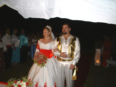 O casamento cigano se estende por três dias, sendo que nos dois primeiros os noivos atendem os convidados separadamente e somente no último dia eles podem ficar a sós pela primeira vez. As festas acontecem em tendas preparadas para a celebração, e nas próprias tendas é oferecida uma farta refeição, bebida e acontecem as comemorações repletas de música e dança.