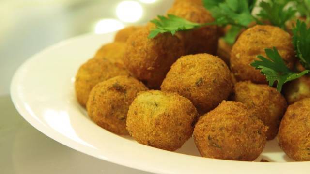 Bolinhos de bacalhau e camarão empanado cento R$ 85,00